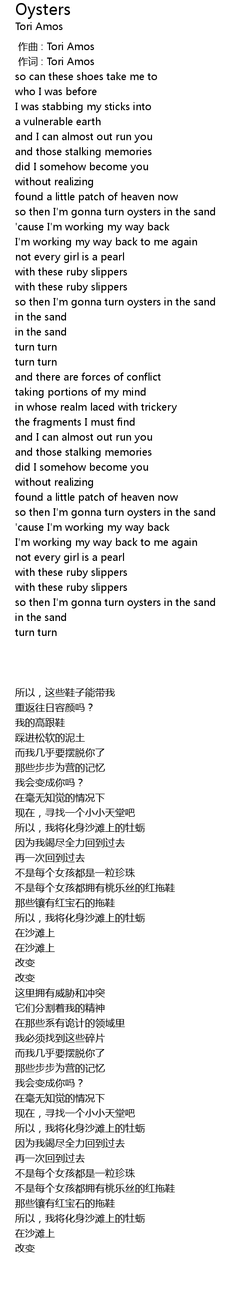 | [00:54.79] | 所以,我将化身沙滩上的牡蛎 |