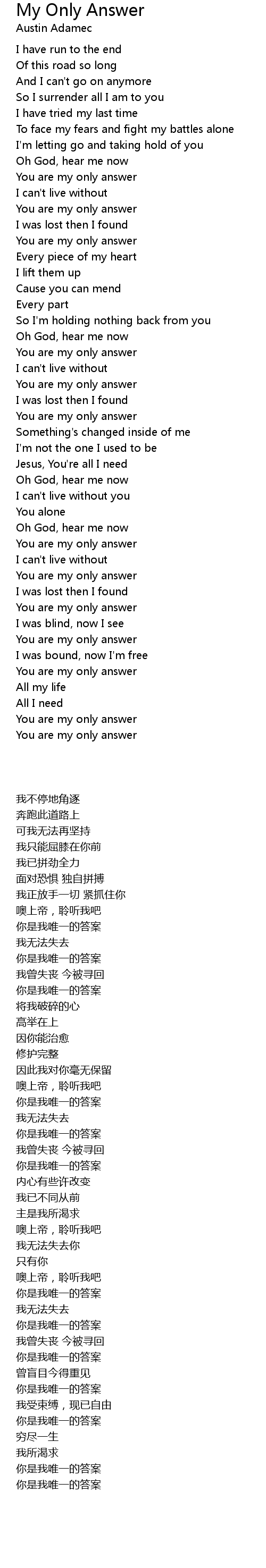 You are my only answer |