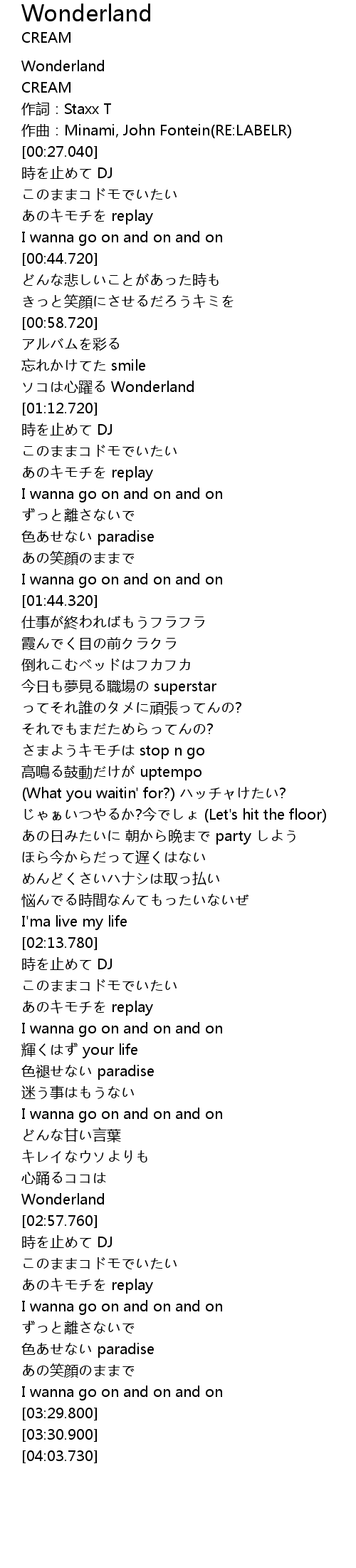| [02:56.090] | Wonderland |