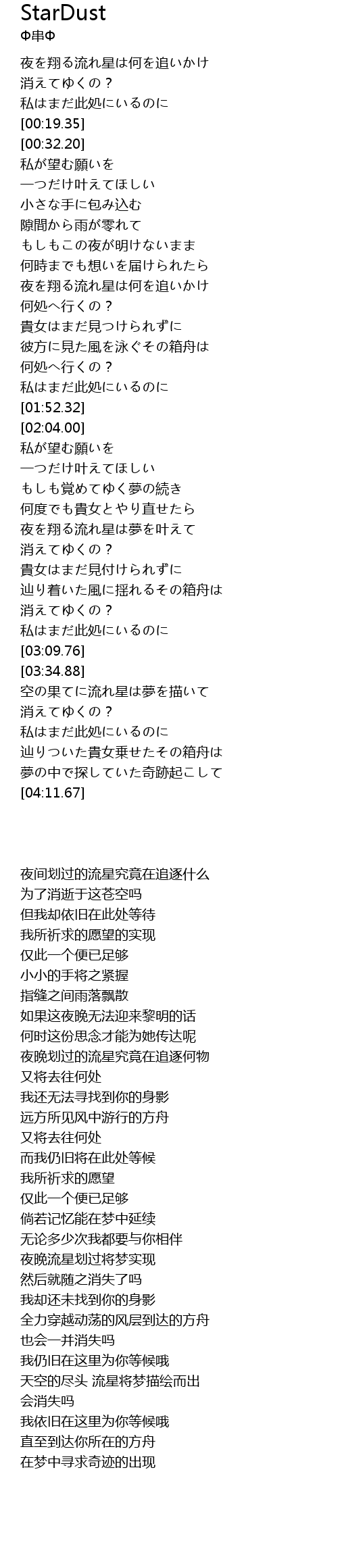 | [02:38.65] | 夜を翔る流れ星は夢を叶えて |