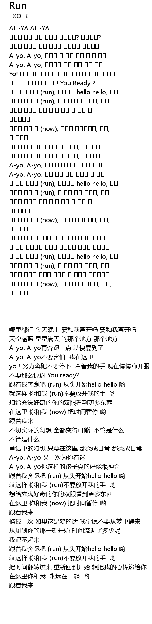 | [01:53.150] | 날 따라 뛰어봐 (run), 처음부터 hello hello, 이요 |
