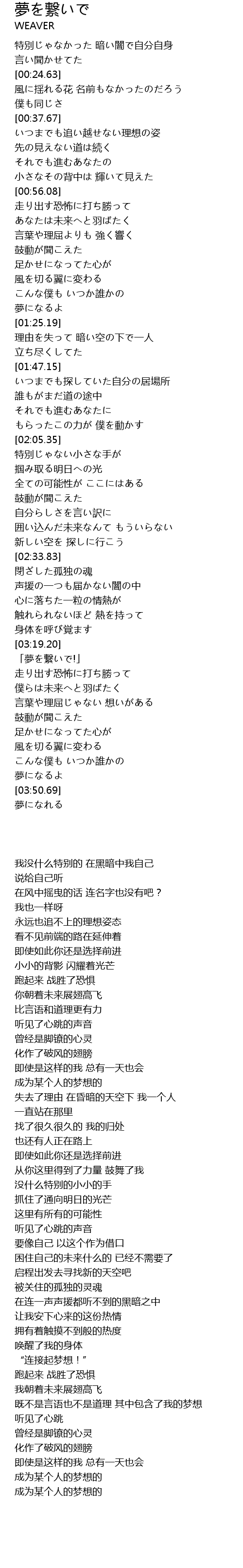 | [03:19.60] | 「夢を繋いで!」 |