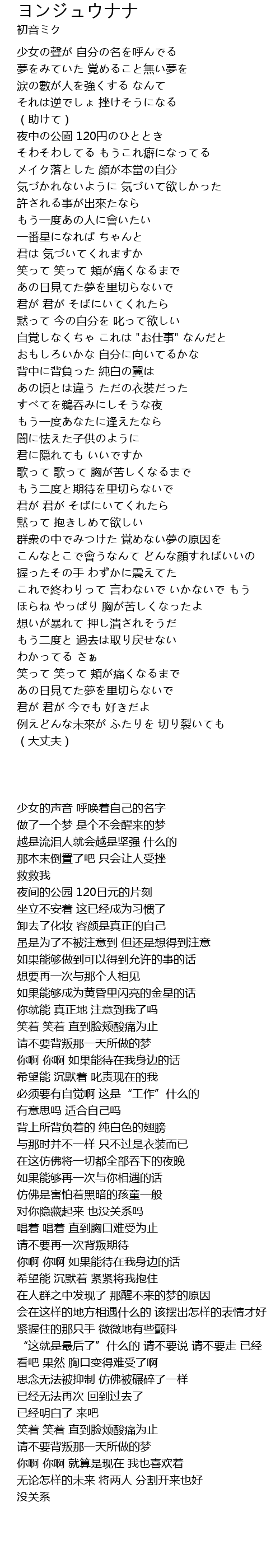 | [00:00.000] | 少女的声音 呼唤着自己的名字 |
