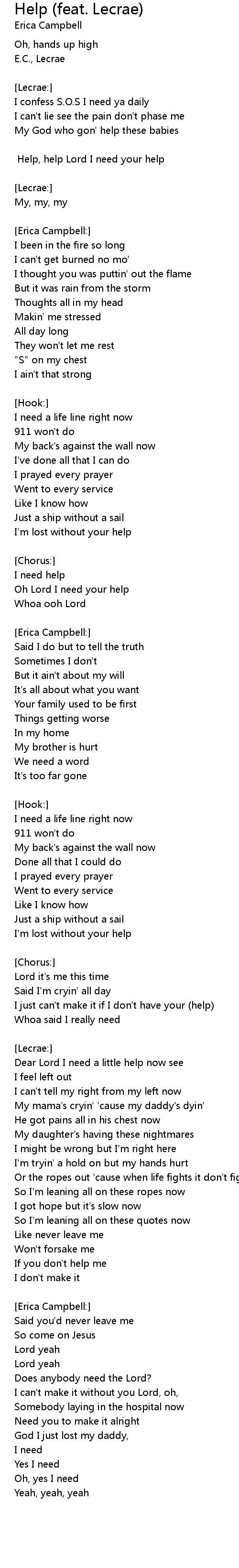 [Chorus:] Help, help Lord I need your help |