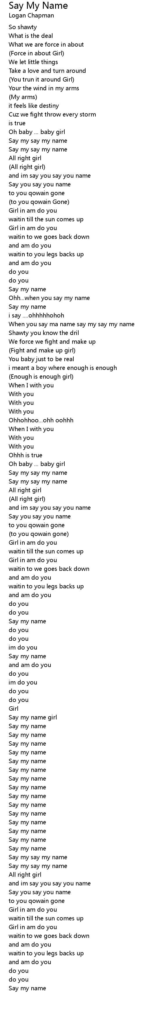 When you say ma name say my say my name |