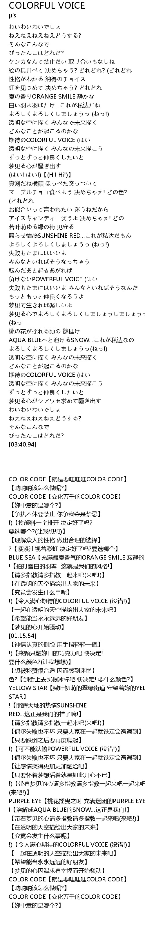 | [00:55.35] | !)【令人满心期待的COLORFUL VOICE (没错!)】 |