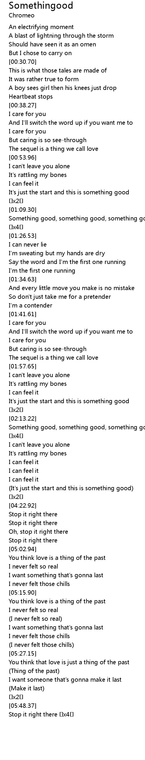 | [02:13.60] | Something good, something good, something good, this is something good x4 |