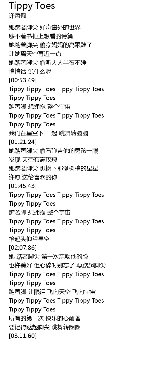 | [00:55.24] | Tippy Tippy Toes Tippy Tippy Toes |