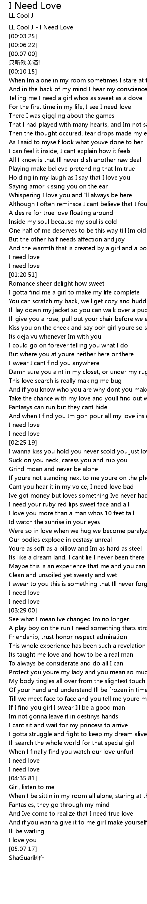 | [02:43.06] | Cant you hear it in my voice, I need love bad |