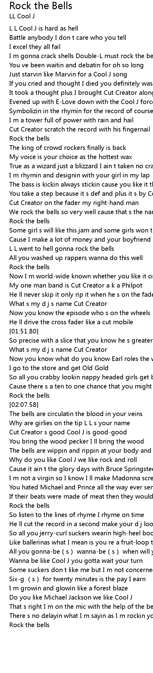 | [02:06.34] | Rock the bells |