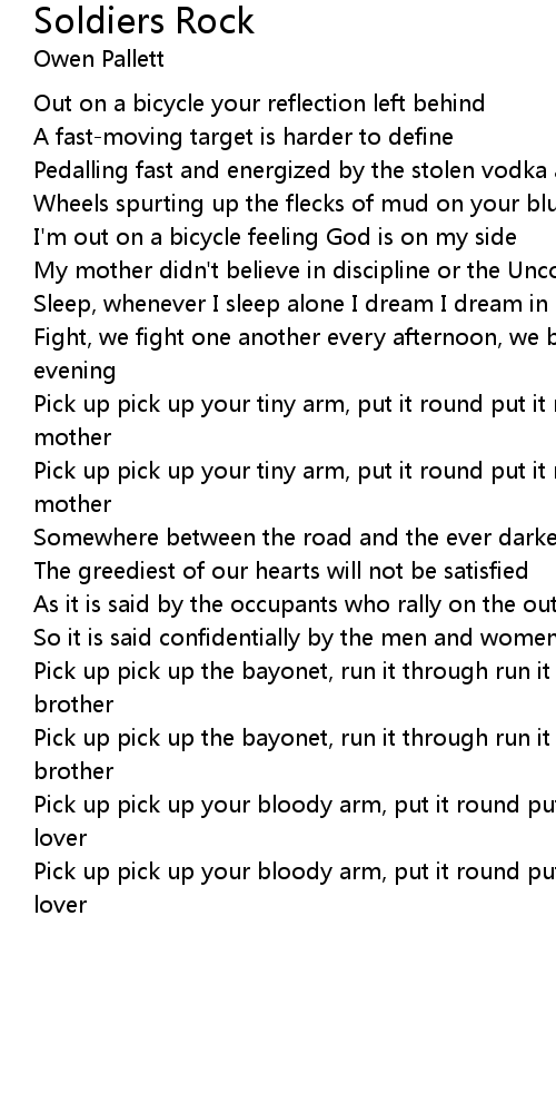 Pick up pick up the bayonet, run it through run it through the stomach of your brother |