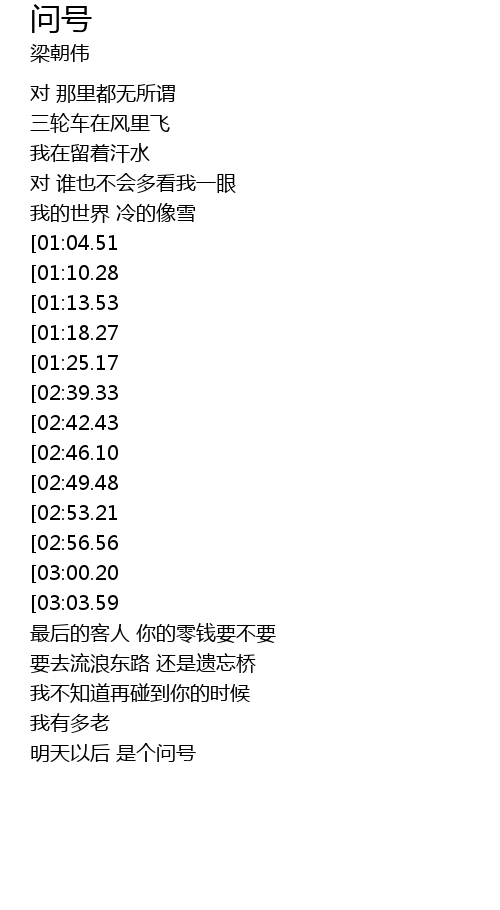 | [03:32.09] | 明天以后 是个问号 |