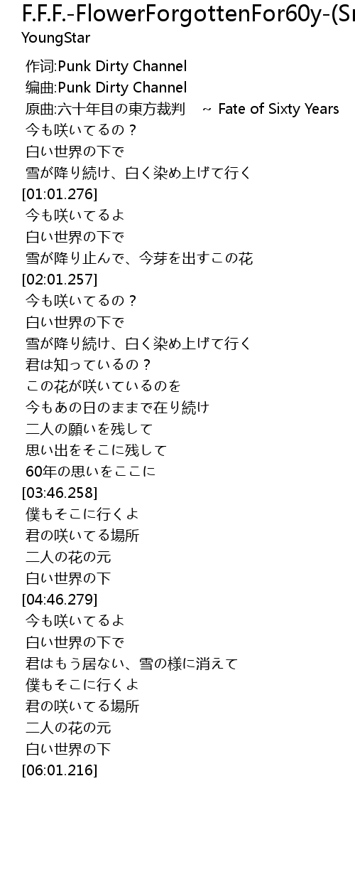 | [00:16.221] | 原曲:六十年目の東方裁判 ~ Fate of Sixty Years |