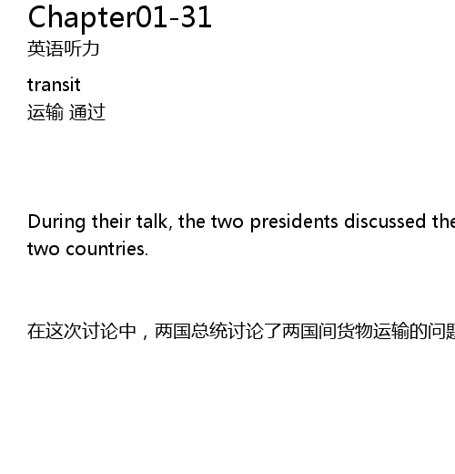 | 在这次讨论中,两国总统讨论了两国间货物运输的问题。 |
