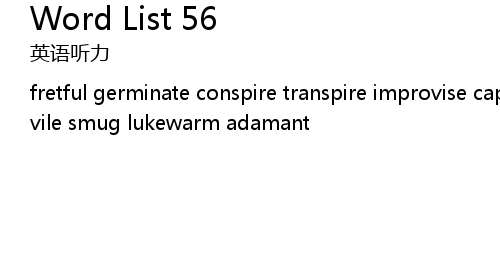 fretful germinate conspire transpire improvise capricious infest ordain synopsis vile smug lukewarm adamant