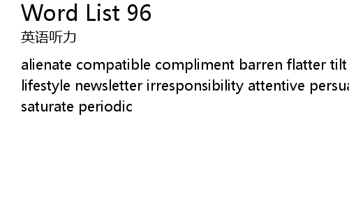 alienate compatible compliment barren flatter tilt furious negligible emotional lifestyle newsletter irresponsibility attentive persuasive obsolete brittle saturate periodic