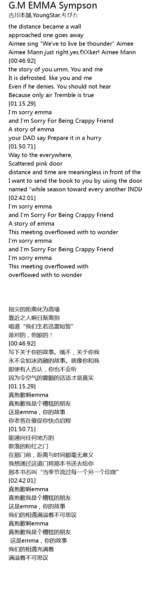 and I'm Sorry For Being Crappy Friend |