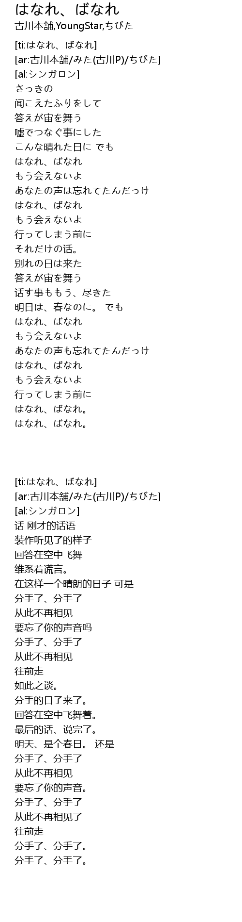 | [00:46.59] | あなたの声は忘れてたんだっけ |