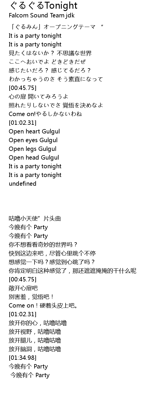 | [01:34.98] | It is a party tonight |