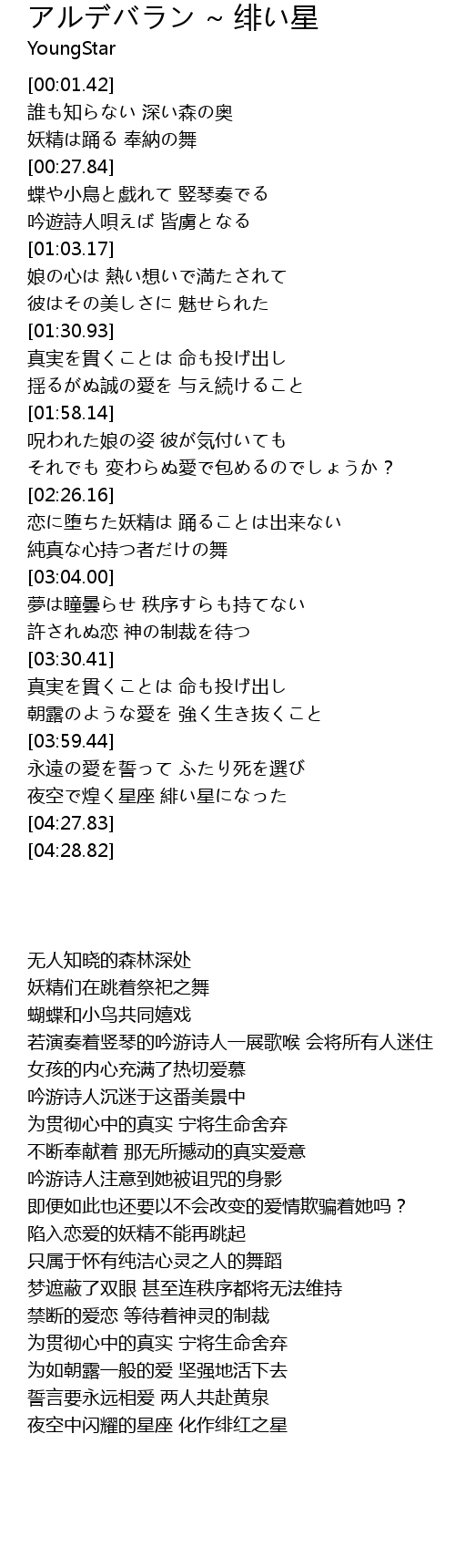| [03:18.03] | 許されぬ恋 神の制裁を待つ |