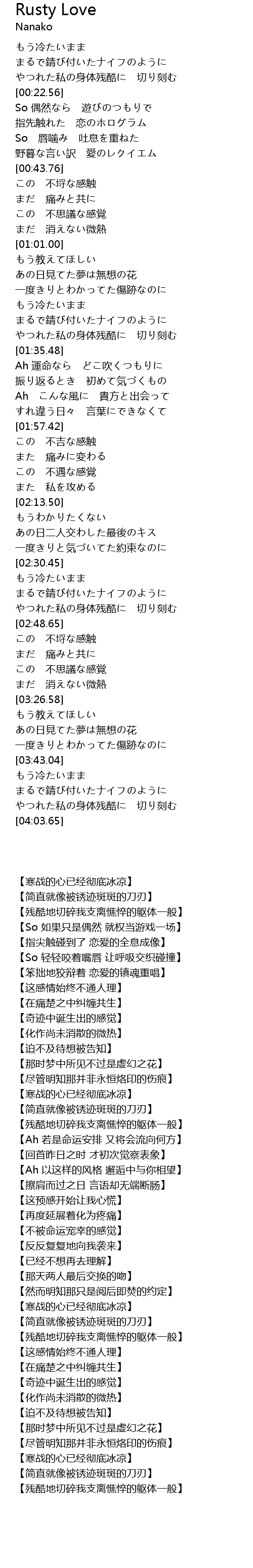 | [00:07.24] | 【简直就像被锈迹斑斑的刀刃】 |