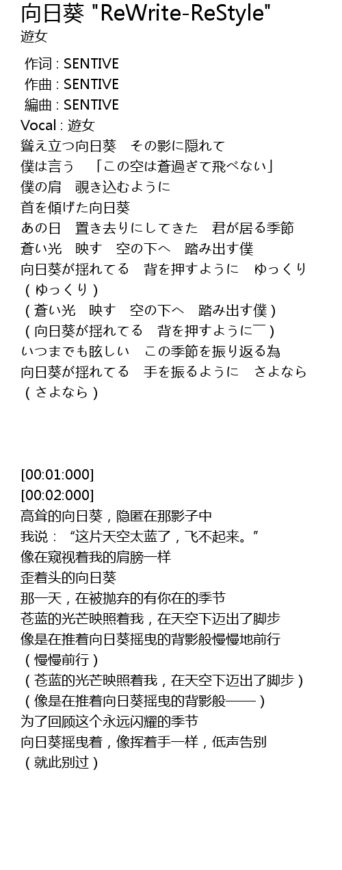| [00:00.000] | 作词 : SENTIVE |