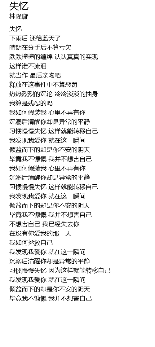 | [00:01.75] | 失忆 |