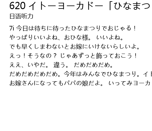 | 7i 今日は待ちに待ったひなまつりでおじゃる! やっぱりいいよね、おひな様。 いいよね。 でも早くしまわないとお嫁にいけないらしいよ。 えっ!そうなの? じゃあずっと飾っておこう! ええ、いやだ。 違う。 だめだめだめ。 だめだめだめだめ。今年はみんなでひなまつり。イトーヨーカドーのひなまつりフェア お嫁さんになってもパパの娘だよ。 いってみヨーカドー。 |