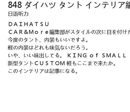 | DAIHATSU CAR&More編集部がスタイルの次に目を付けたのは。 今度のタント、内装もいいですよ。 軽の内装はどれも味気ないだろう。 いや、いい味出してる。 KING of SMALL 新型タントCUSTOM 軽もここまで来たか。 このインテリアは記事になる。 |