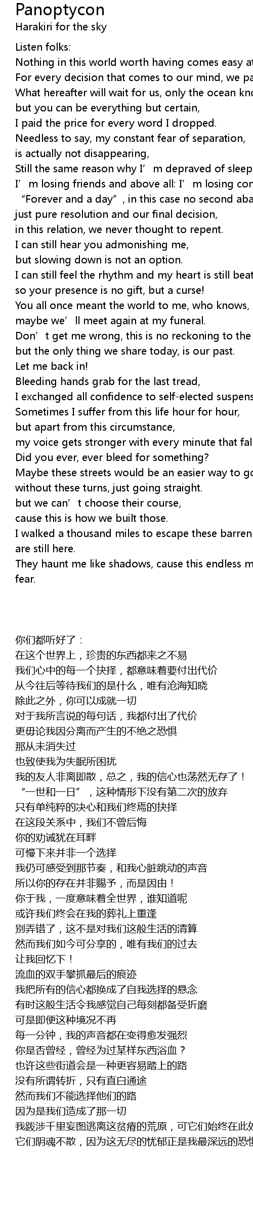 | 歌曲 | Panoptycon |
