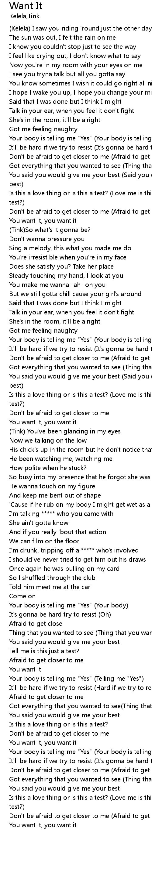 | [01:40.155] | Your body is telling me "Yes" (Your body is telling me "Yes") |