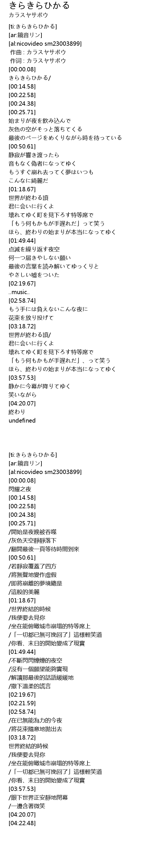 | [ti:きらきらひかる] | |