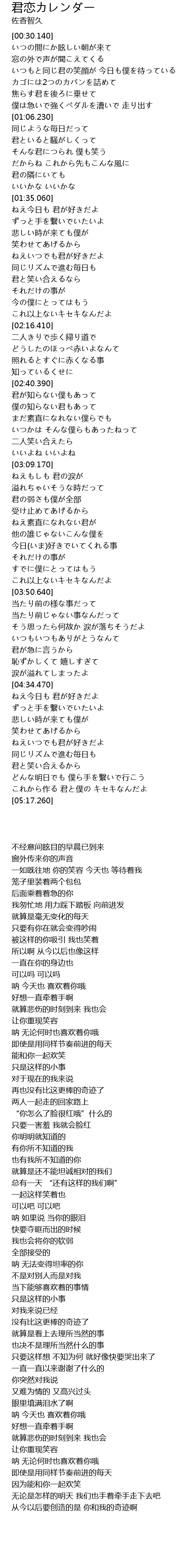 | [00:43.400] | いつもと同じ君の笑顔が 今日も僕を待っている |