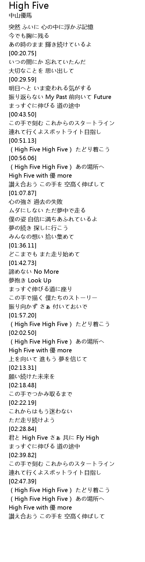 | [01:00.00] | High Five with 優 more |