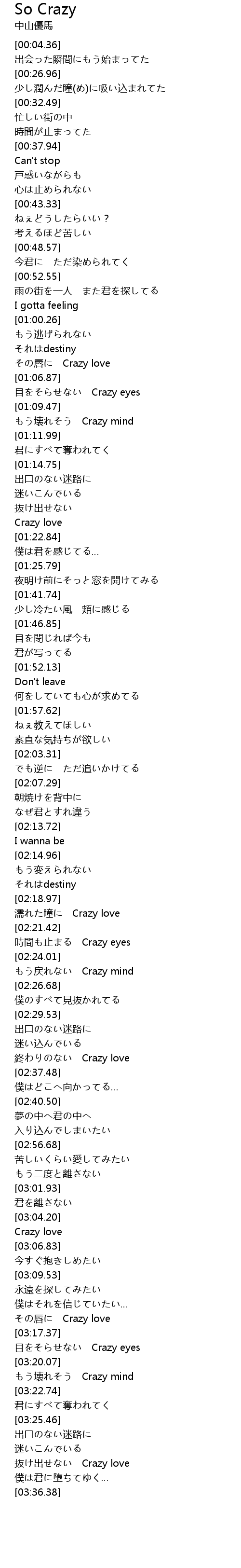 もう壊れそう Crazy mind |