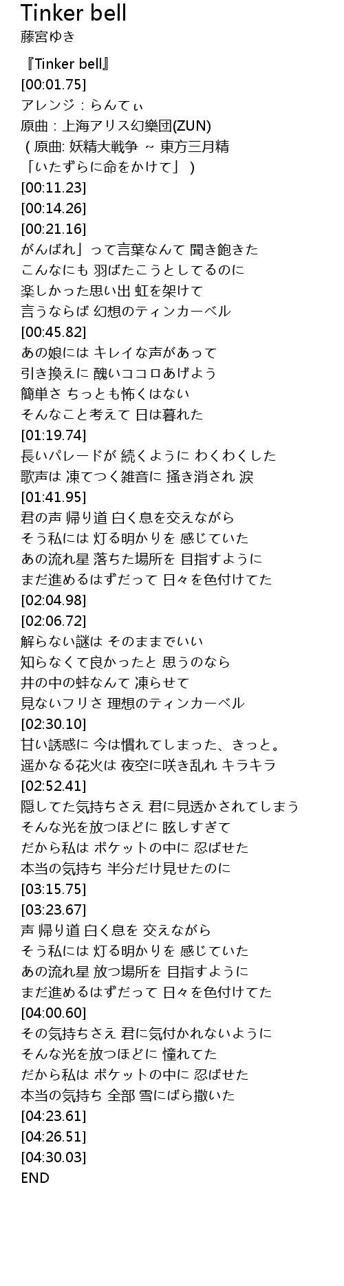 | [00:00.72] | 『Tinker bell』 |