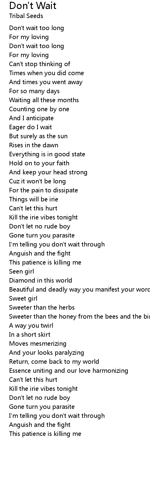 I'm telling you don't wait through |