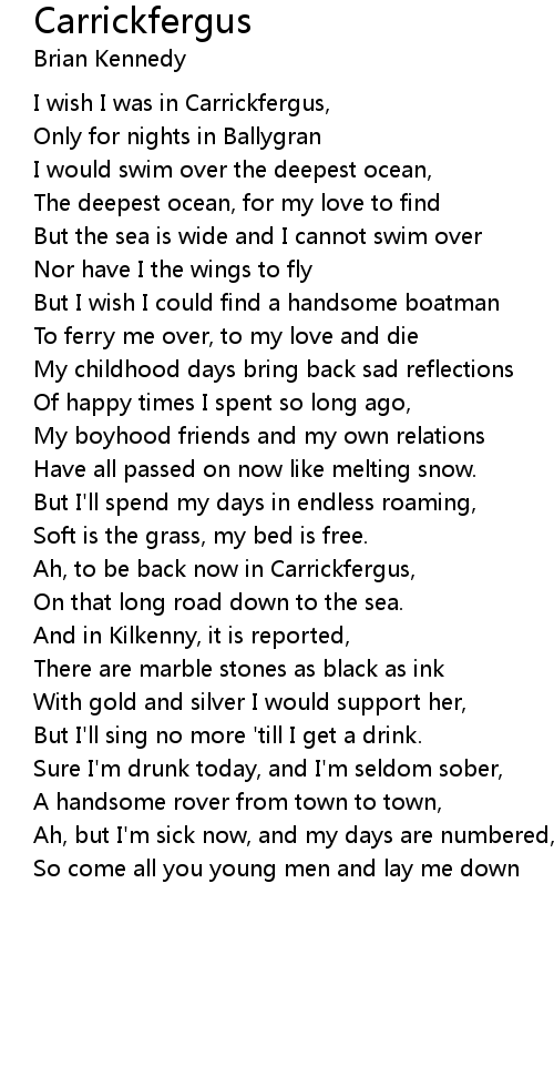 I wish I was in Carrickfergus, |