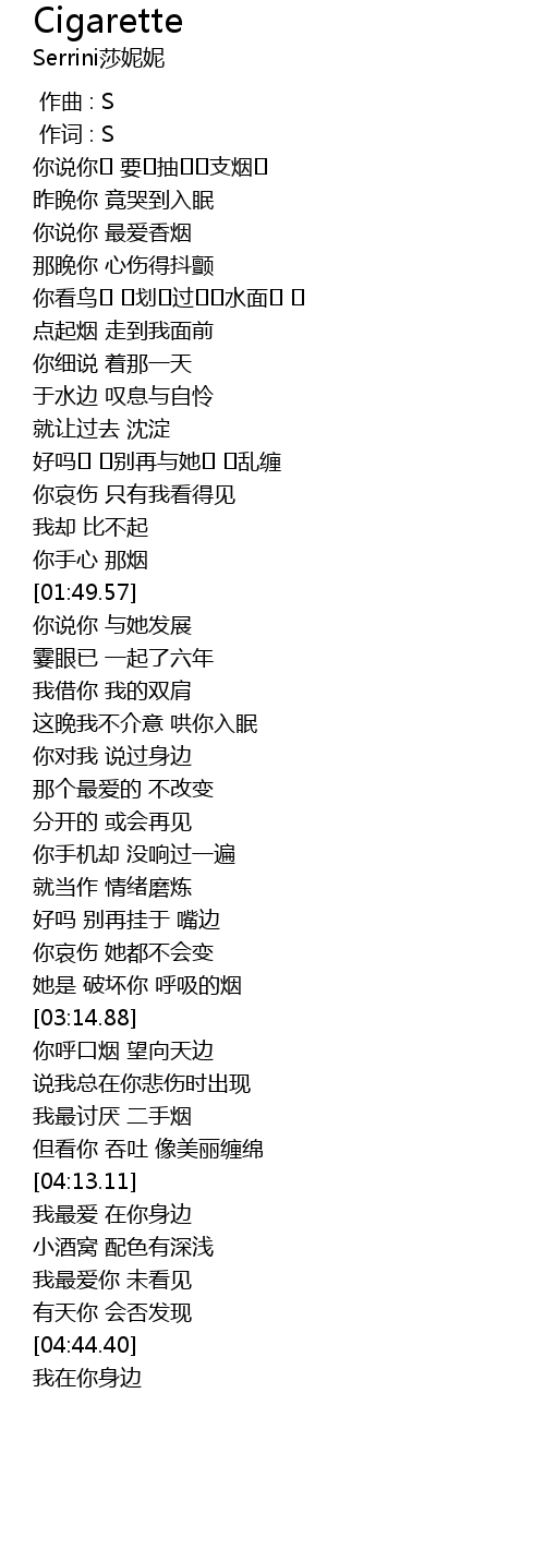 | [00:41.84] | nǐ shuō nǐ zuì ài xiāng yān |