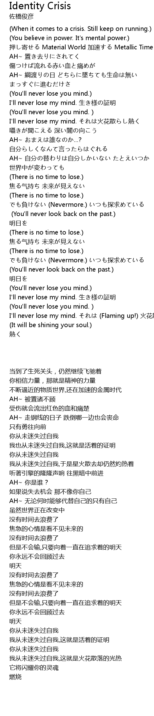 | [00:17.460] | (When it comes to a crisis. Still keep on running.) |