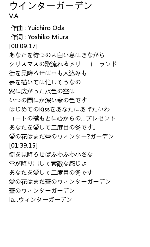| [02:17.21] | 愛の花はまだ蕾のウィンターガーデン |
