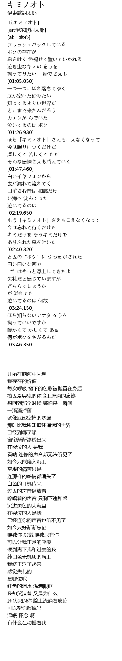 | [02:20.050] | もう「キミノオト」さえもこえなくなって |