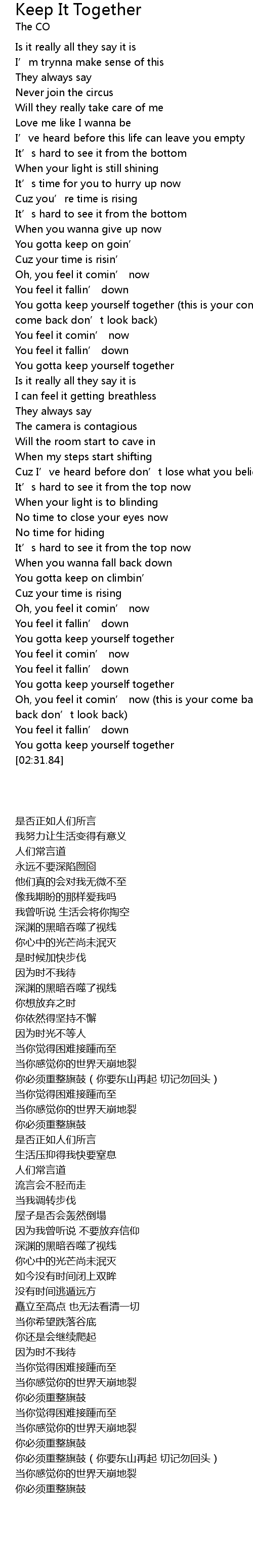 | [02:30.09] | You gotta keep yourself together |