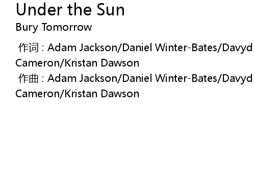| [00:00.000] | 作词 : Adam Jackson/Daniel Winter-Bates/Davyd Winter-Bates/Jason Cameron/Kristan Dawson |