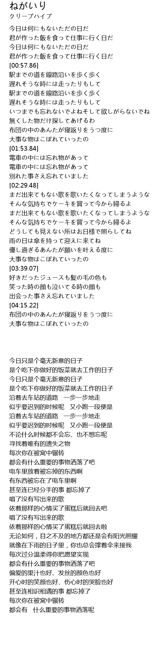 | [00:44.21] | 今日は何にもないただの日だ |
