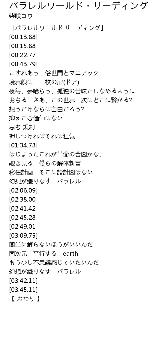 | [00:01.88] | 「パラレルワールド·リーディング」 |
