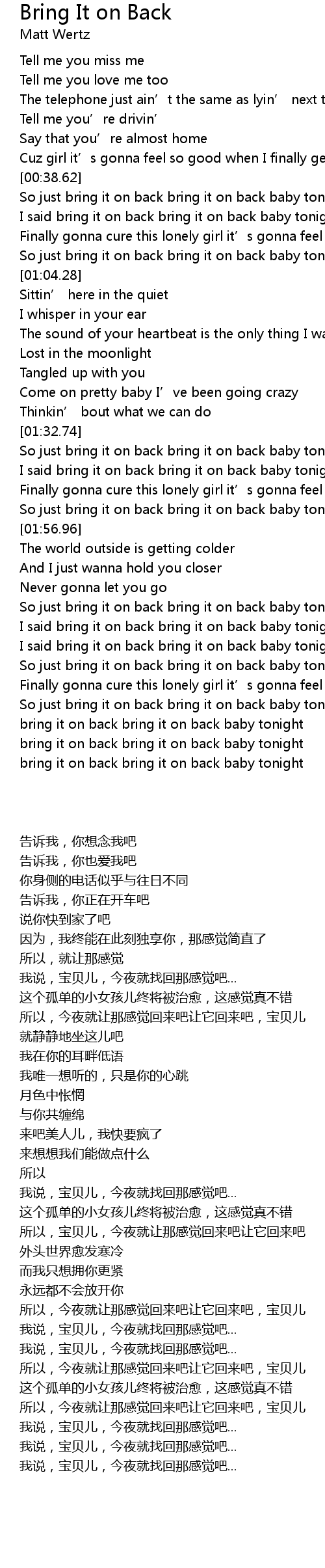 | [02:53.81] | bring it on back bring it on back baby tonight |