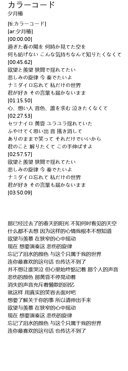 | [00:45.73] | 欲望と羨望 狭間で揺れてたい |