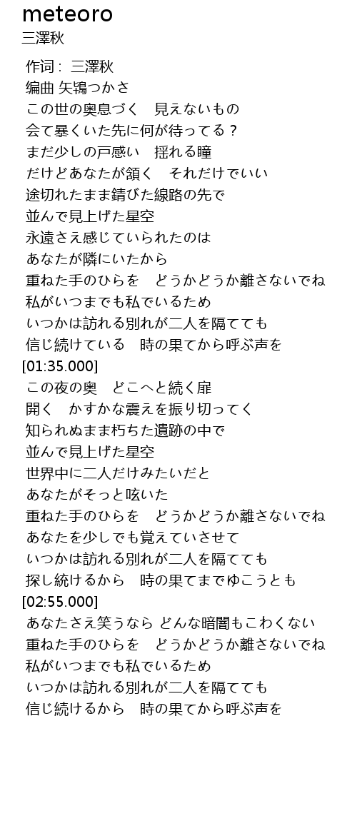 | [00:00.000] | 作词 : 三澤秋 |
