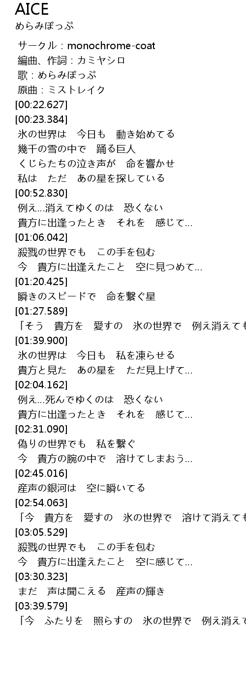 | [00:13.874] | 歌:めらみぽっぷ |